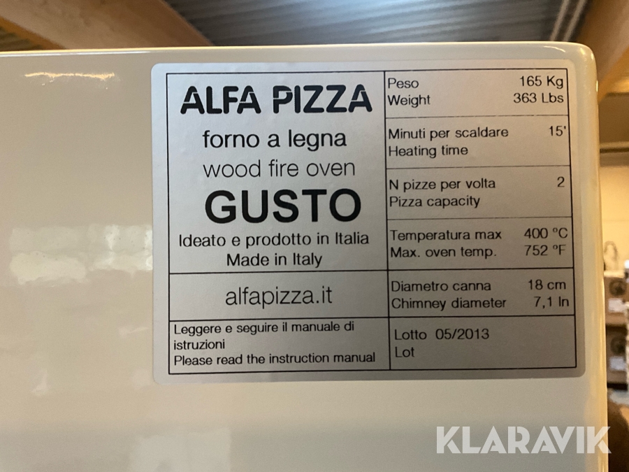 Vedeldad pizzaugn Alfa Pizza Gusto