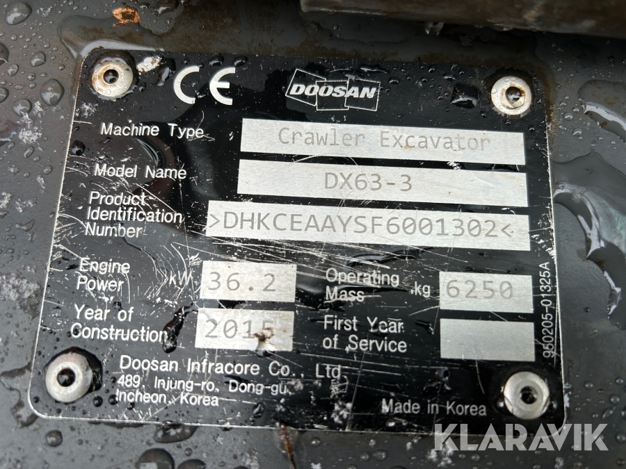 Grävmaskin Doosan DX63-3 , med tiltrotator