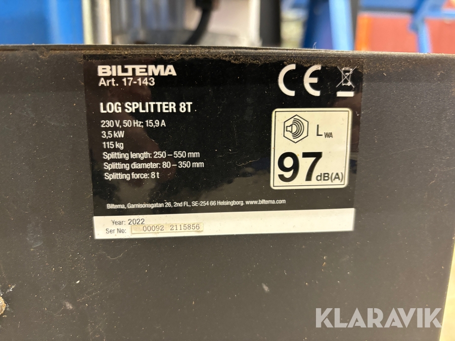 Vedklyv Biltema 8 Ton
