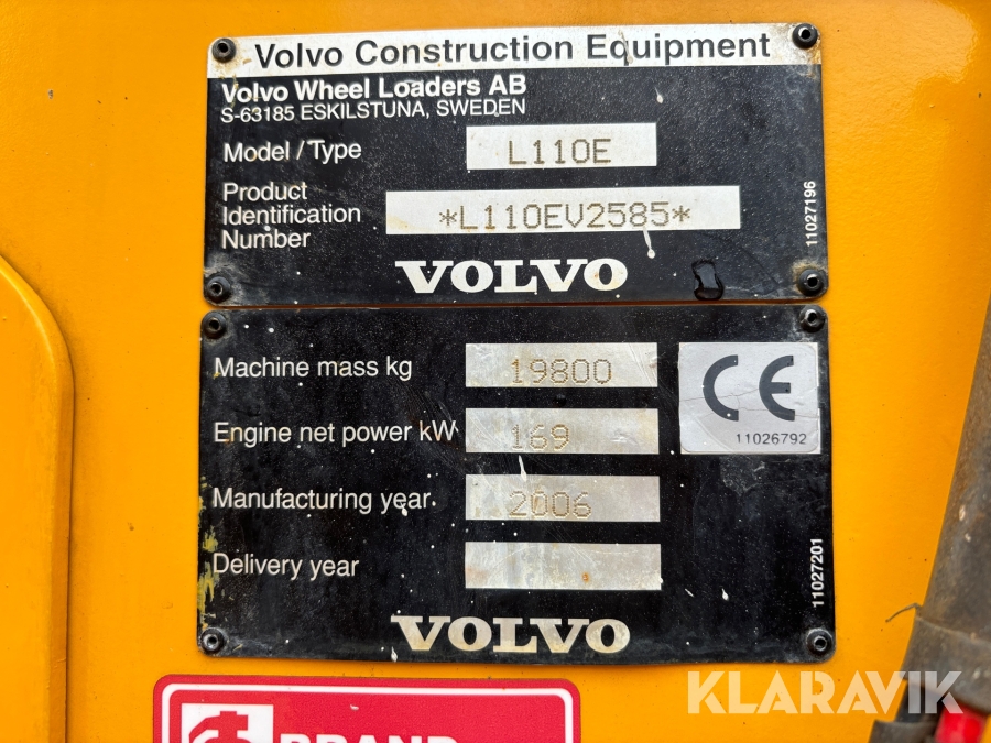 Hjullastare Volvo L110E med hydraulisk lyftbom