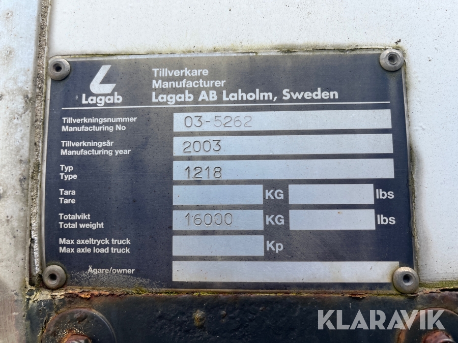 Skåp till lastbil Lagab 1218