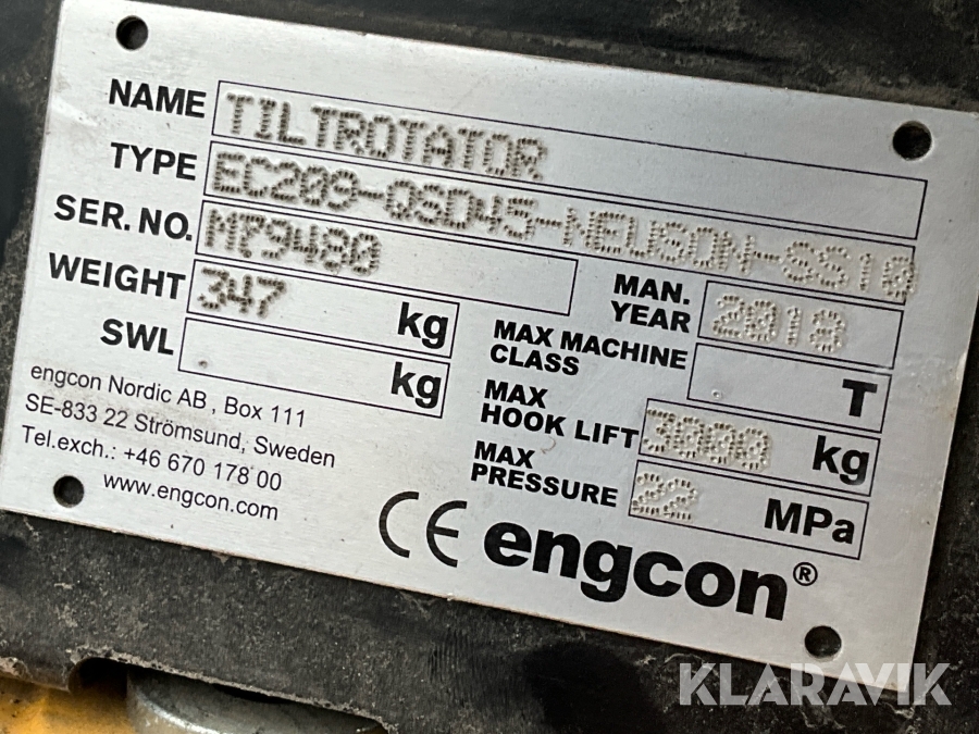 Tiltrotator Engcon EC209 S45/ direktinfäst