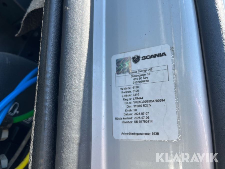 • Serie/chassinummer framgår