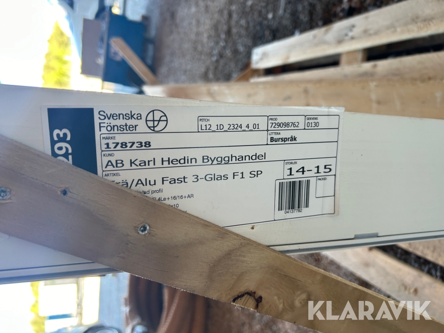Fönster Svenska Fönster Trä/Alu fast 3-glas F1 stl 14-15