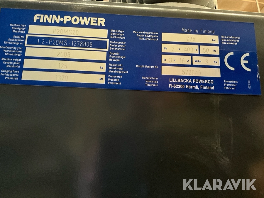 Slangpress Finn-Power P20 med slang och slangställning