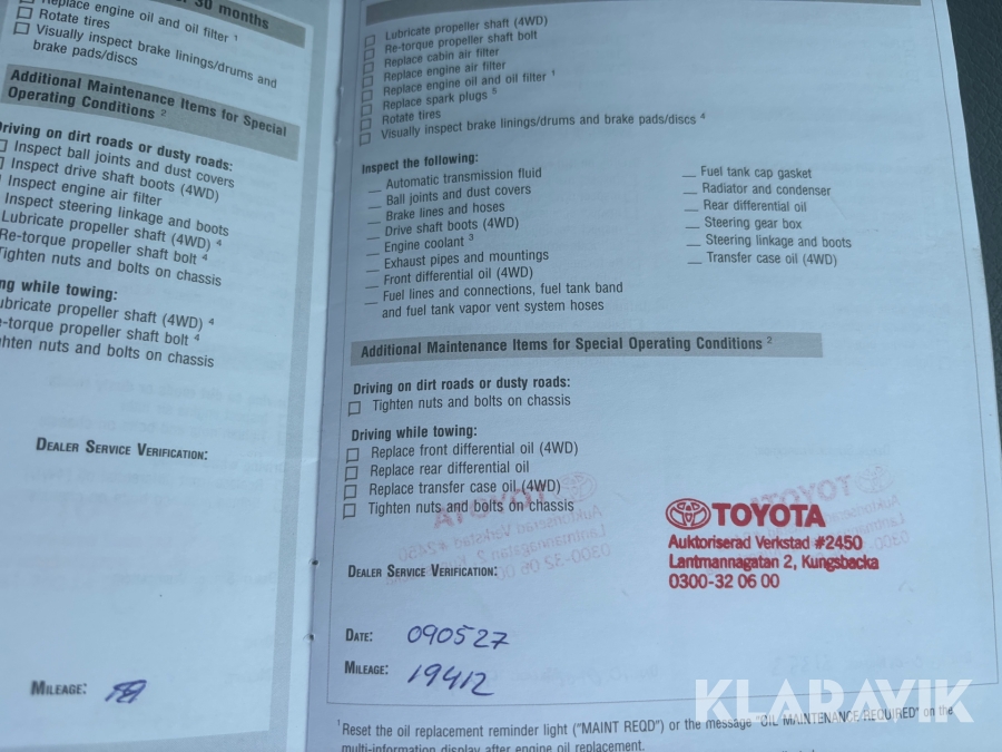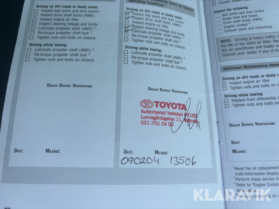 • Serie/chassinummer framgår