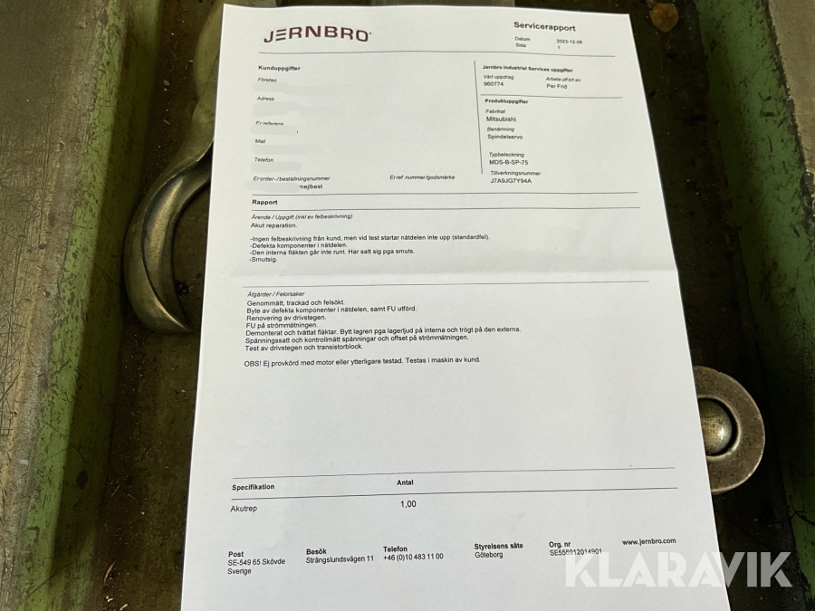 Boka frakt? Det finns ingen specifik information om frakt för just det här objektet, men om du skickar oss en förfrågan via vårt fraktformulär, så undersöker vi möjligheten. Paket, EU-pall eller större maskin? Klaravik har fraktavtal med Schenker och i de fall vi kan hjälpa till med frakt gäller det objekt som ryms i paket eller inom en EU-pall (upp till 120*80 cm och 990 kg). Det går att beställa frakt inom Sverige, dock inte till utlandet. Vid frakt på större maskiner rekommenderar vi gärna transportföretag som du kan kontakta.