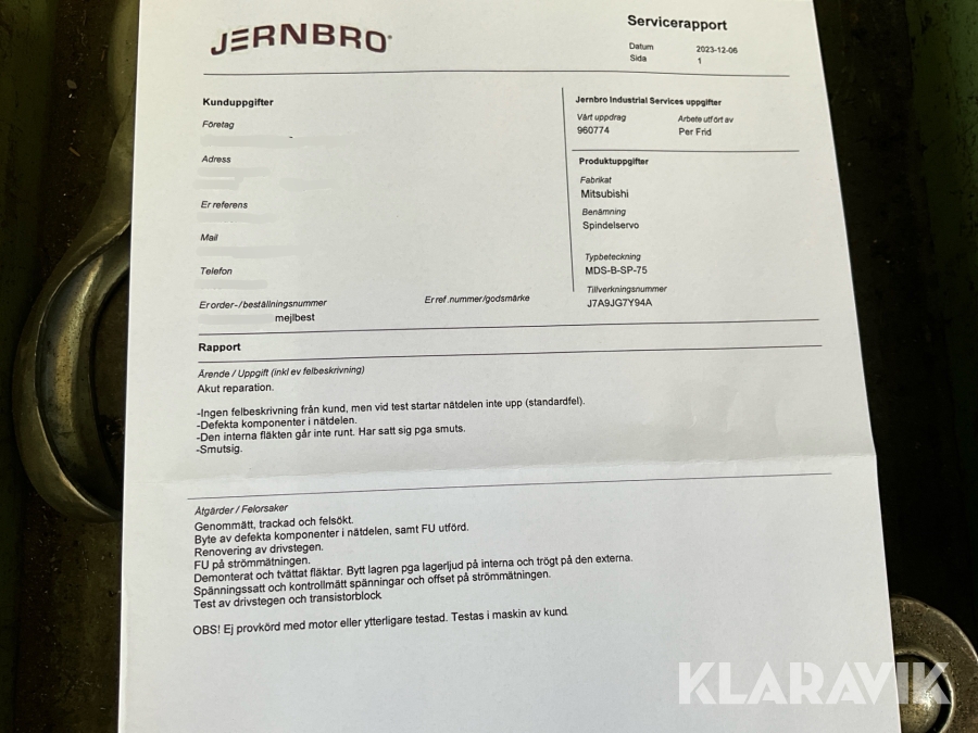 Du som köpare är skyldig att kontrollera objektet vid hämtning. Skiljer sig något avsevärt jämfört med informationen på klaravik.se? Kontakta då Klaravik innan du tar objektet från platsen. Läs fullständiga köpvillkor.