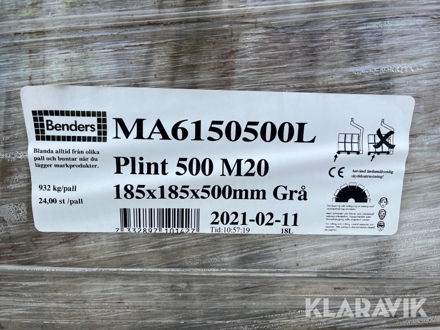 Betongplint Benders 500mm M20 30 pallar a 24 st med stolpskor