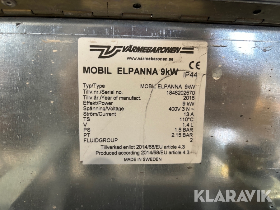 Mobil elpanna Värmebaronen 9kW