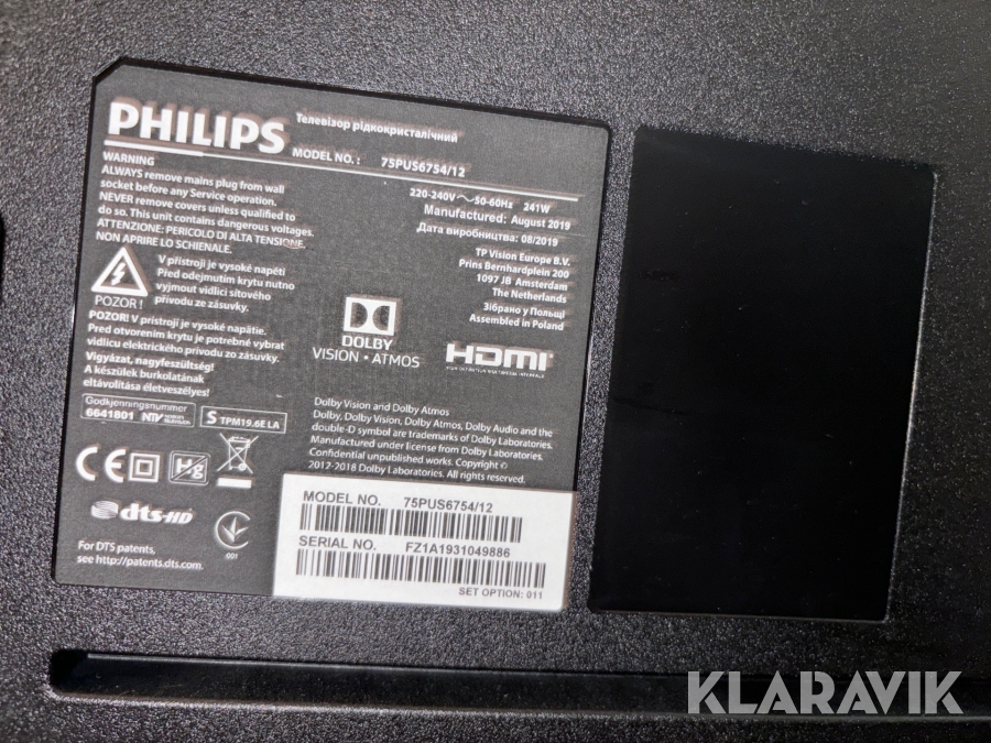 TV 75 tums Philips 75PUS6754/12 med TV-bänk