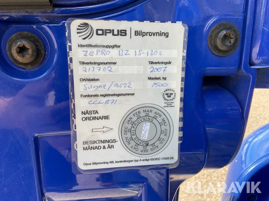 • Serie/chassinummer framgår