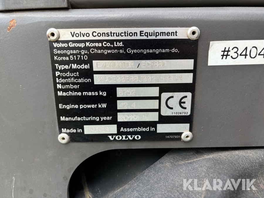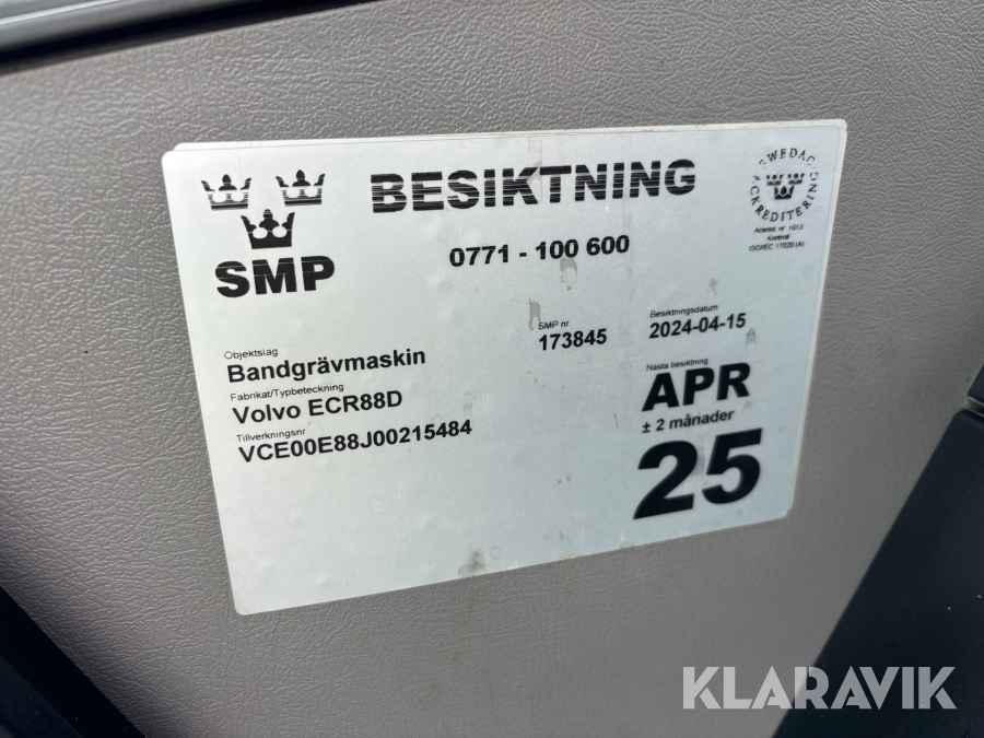 Grävmaskin Volvo ECR88D med tiltrotator och redskap