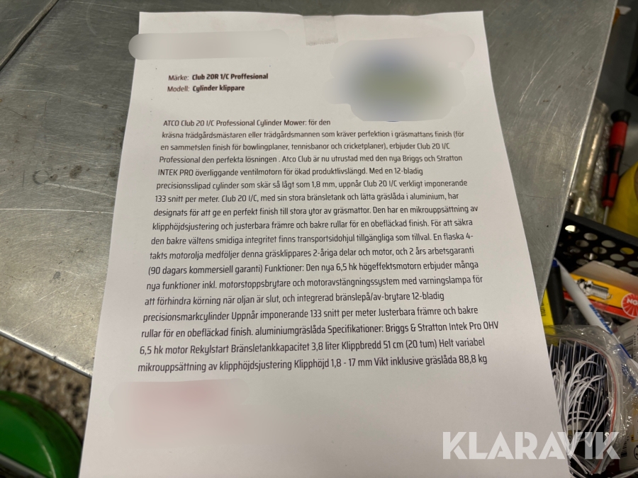 Du som köpare är skyldig att kontrollera objektet vid hämtning. Skiljer sig något avsevärt jämfört med informationen på klaravik.se? Kontakta då Klaravik innan du tar objektet från platsen. Läs fullständiga köpvillkor.