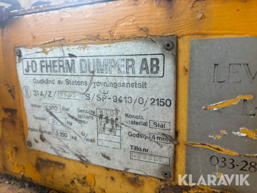 Dieseltank 1500 l J-O Fherm Dumper