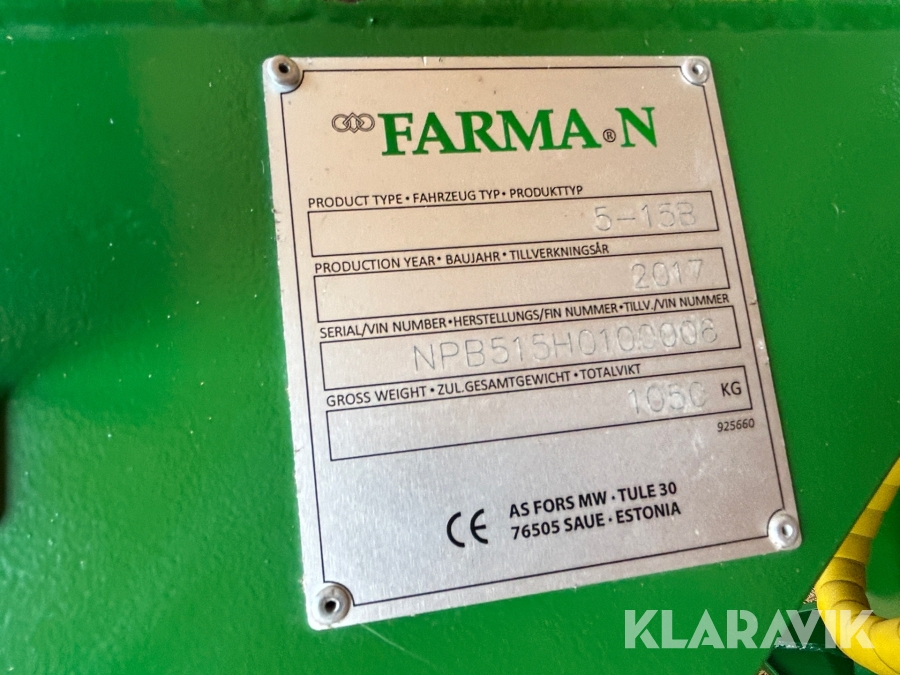 Boka frakt? Det finns ingen specifik information om frakt för just det här objektet, men om du skickar oss en förfrågan via vårt fraktformulär, så undersöker vi möjligheten. Paket, EU-pall eller större maskin? Klaravik har fraktavtal med Schenker och i de fall vi kan hjälpa till med frakt gäller det objekt som ryms i paket eller inom en EU-pall (upp till 120*80 cm och 990 kg). Det går att beställa frakt inom Sverige, dock inte till utlandet. Vid frakt på större maskiner rekommenderar vi gärna transportföretag som du kan kontakta.
