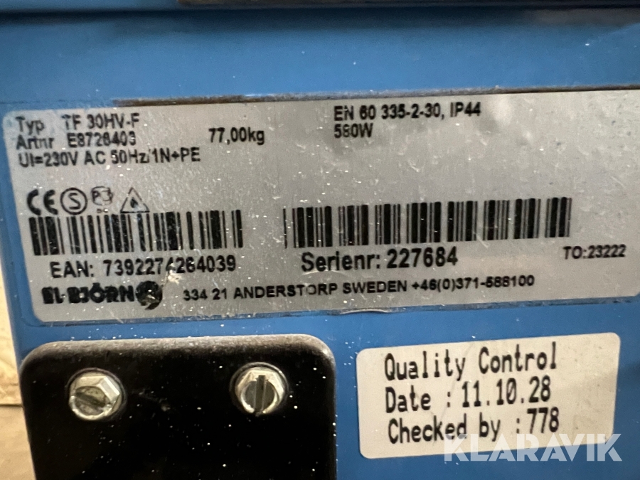 Du som köpare är skyldig att kontrollera objektet vid hämtning. Skiljer sig något avsevärt jämfört med informationen på klaravik.se? Kontakta då Klaravik innan du tar objektet från platsen. Läs fullständiga köpvillkor.