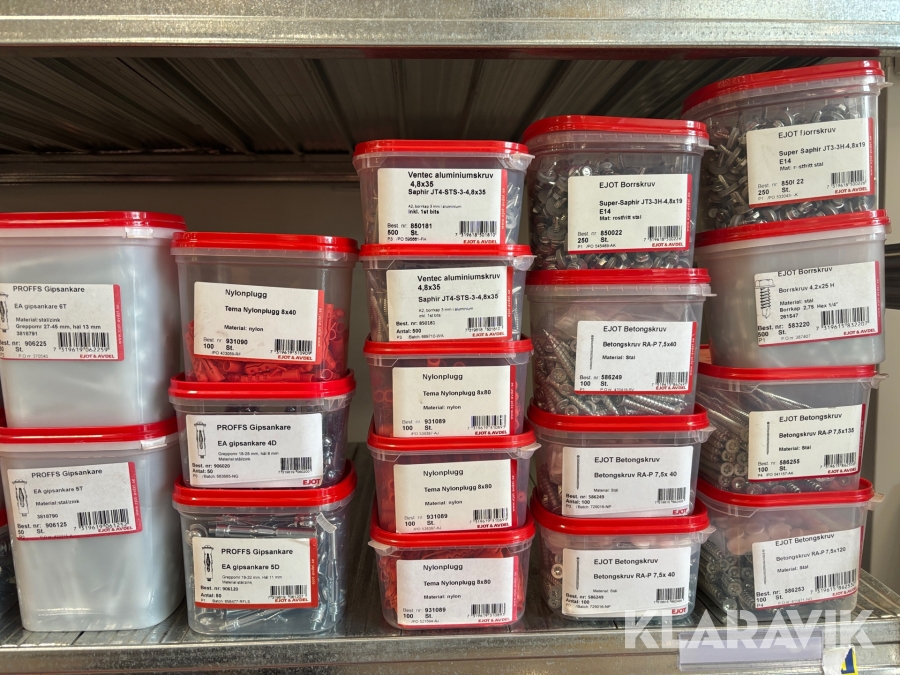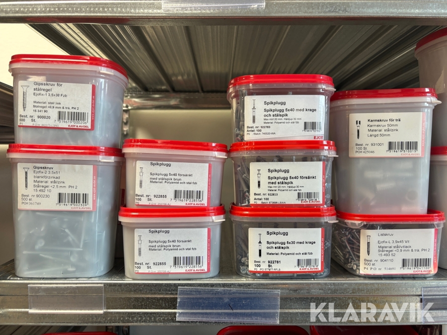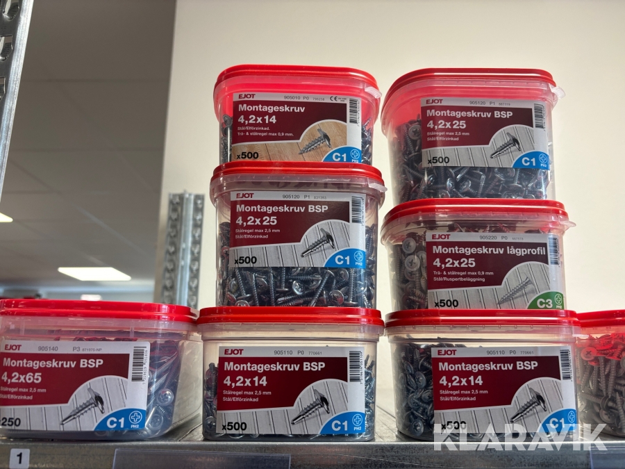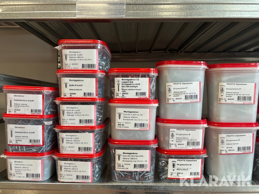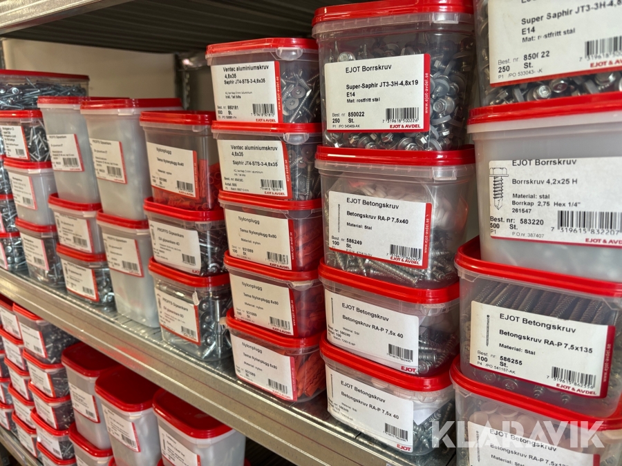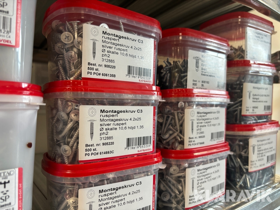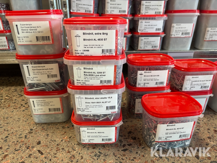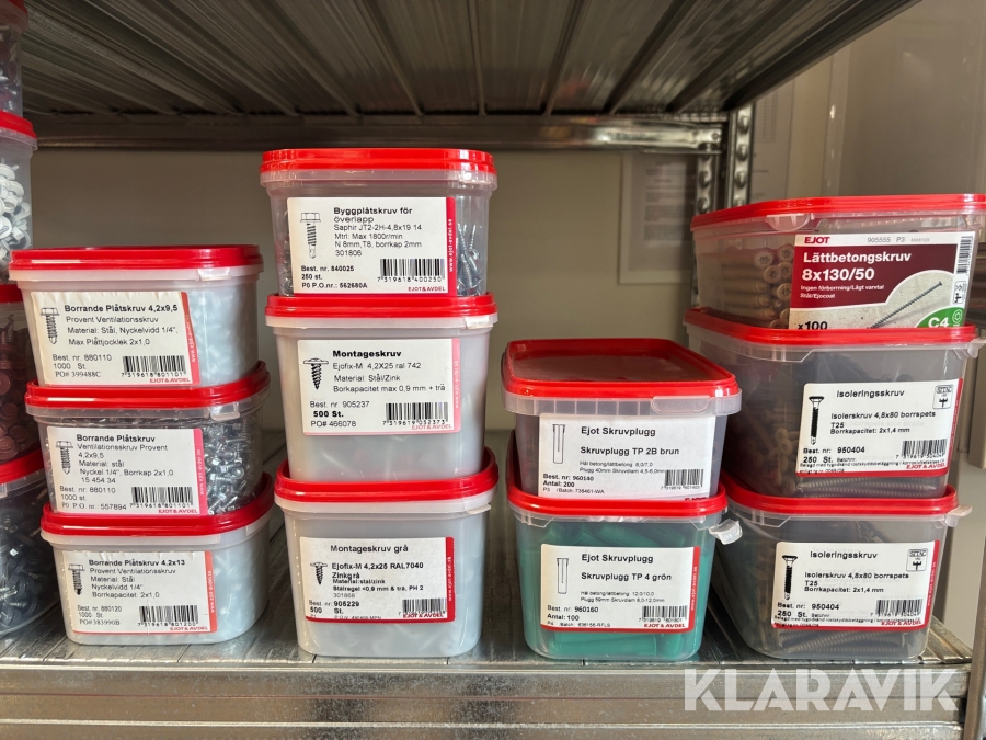 Blandat parti med montageskruv spik mm Ejot & Avdel olika storlek och dimensioner