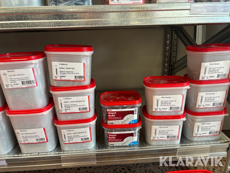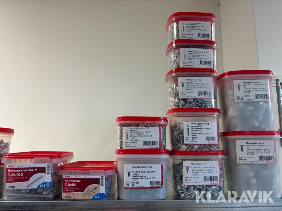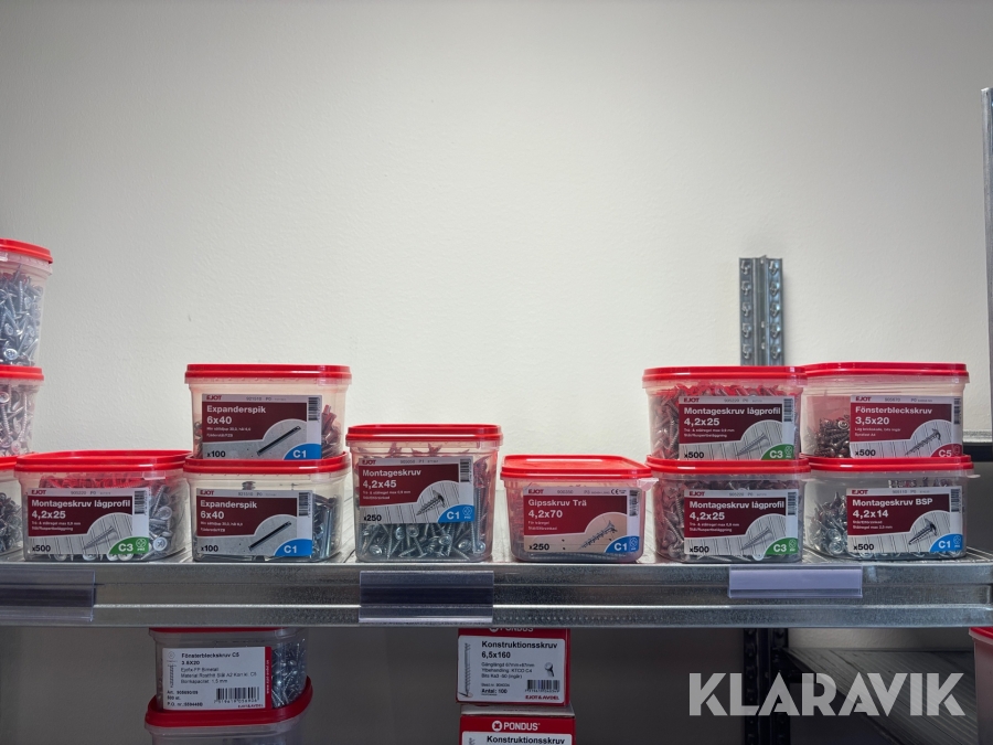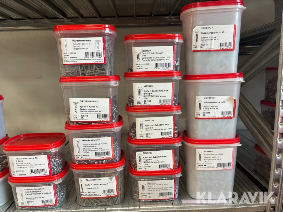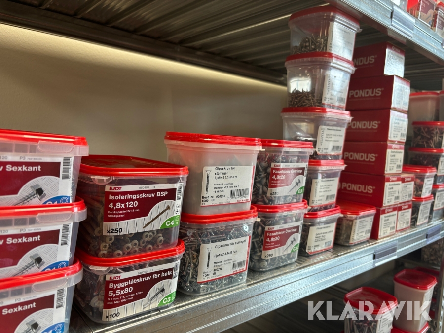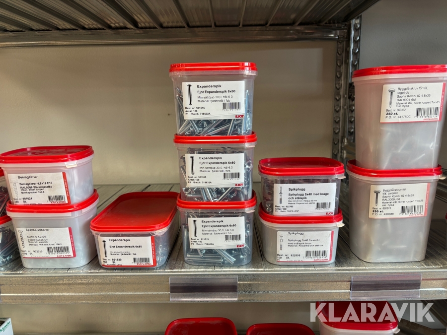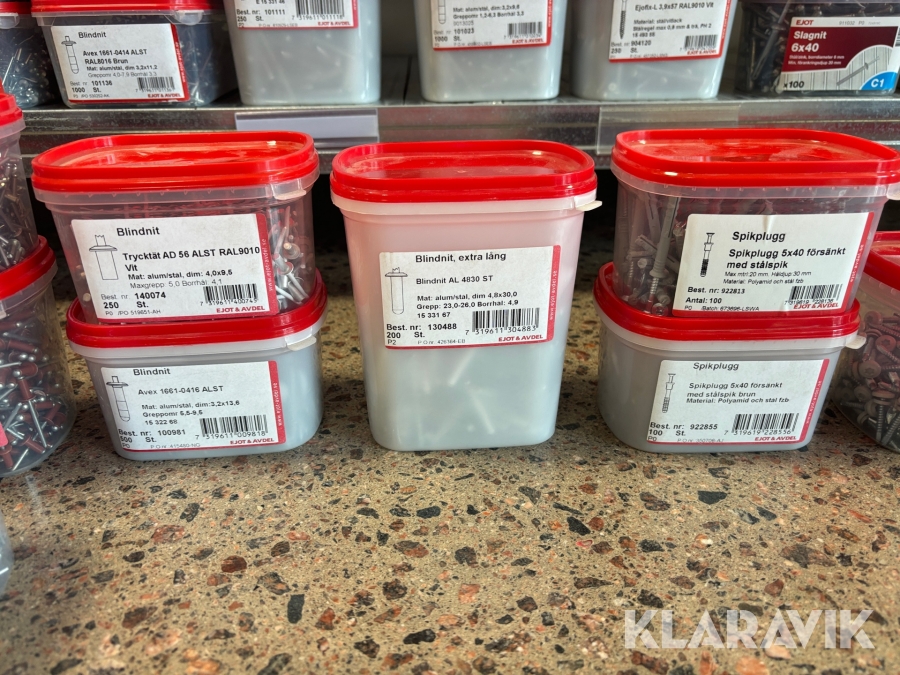 Blandat parti med montageskruv spik mm Ejot & Avdel olika storlek och dimensioner
