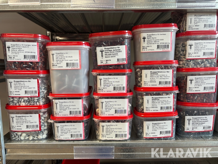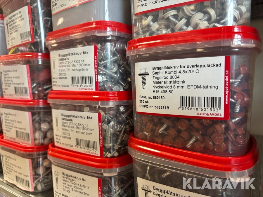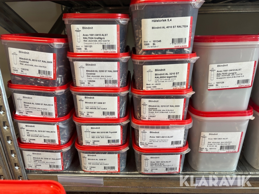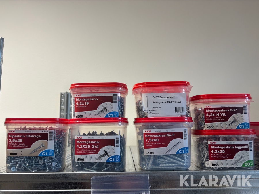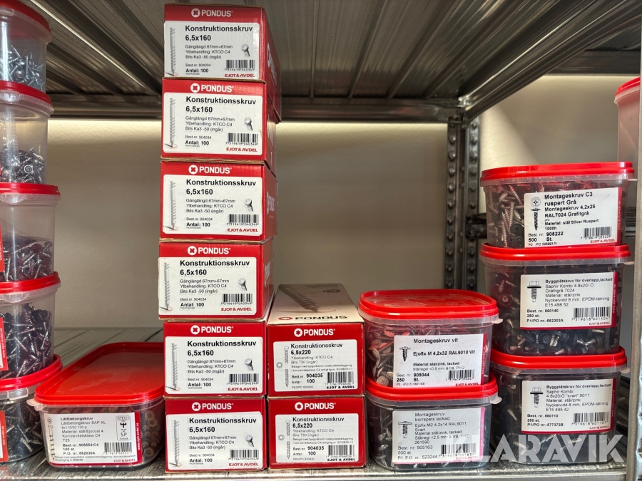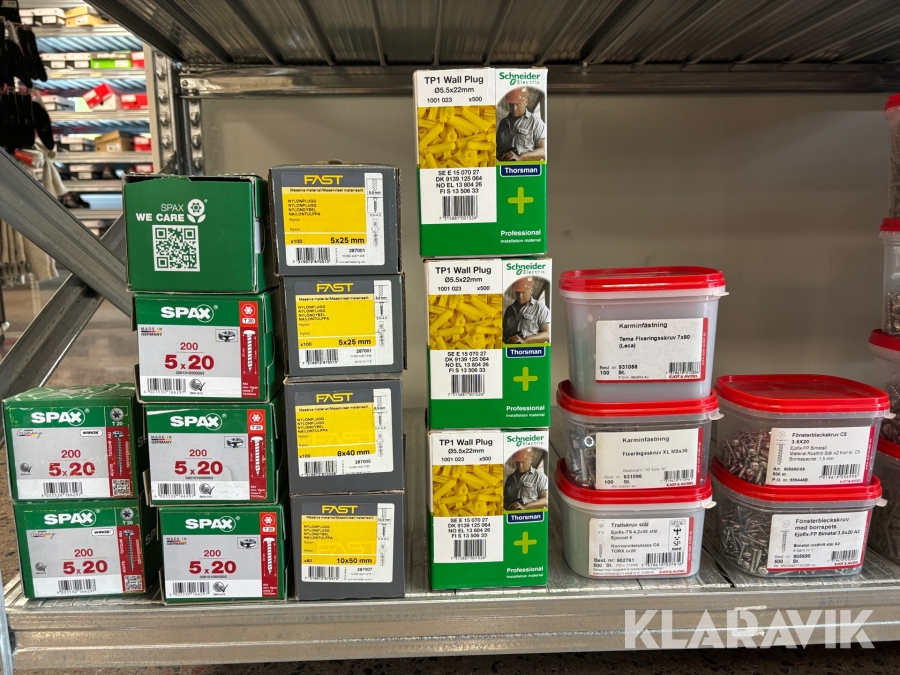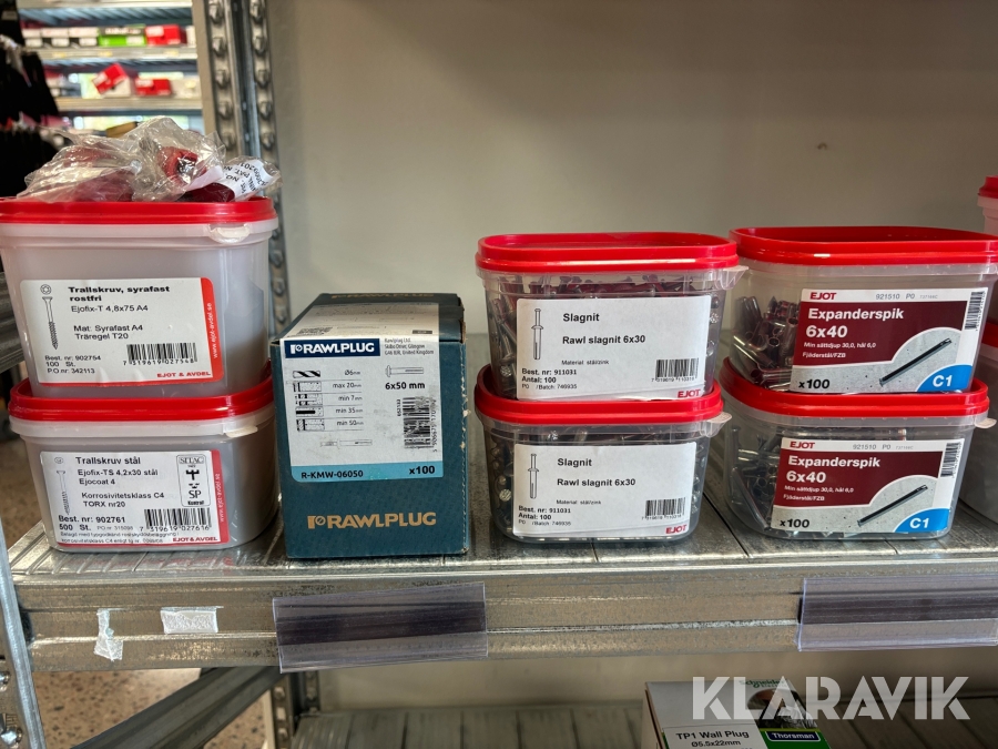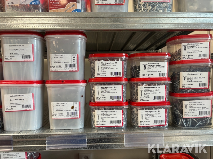 Blandat parti med montageskruv spik mm Ejot & Avdel olika storlek och dimensioner