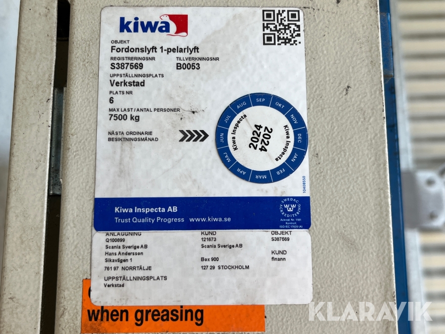 Fordonslyft Arje 7500 6 st