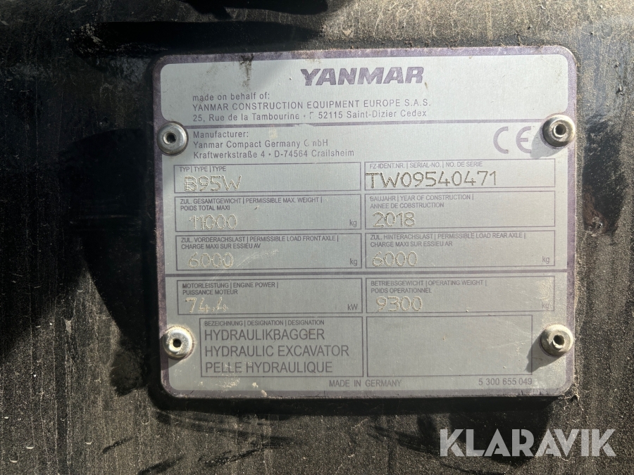 Hjulgrävare Yanmar B95W - Inklusive tiltrotator och redskap