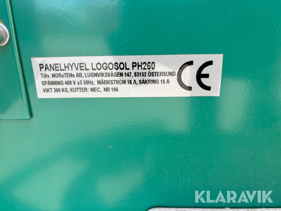 Fyrkutterhyvel/panelhyvel Logosol PH260