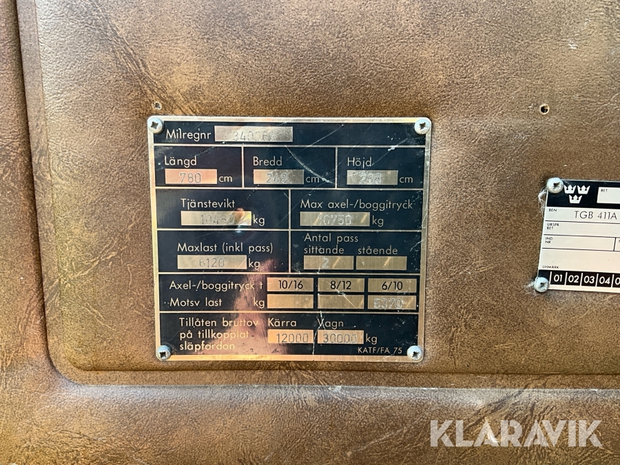 • Serie/chassinummer framgår