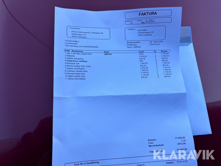 Du som köpare är skyldig att kontrollera objektet vid hämtning. Skiljer sig något avsevärt jämfört med informationen på klaravik.se? Kontakta då Klaravik innan du tar objektet från platsen. Läs fullständiga köpvillkor.
