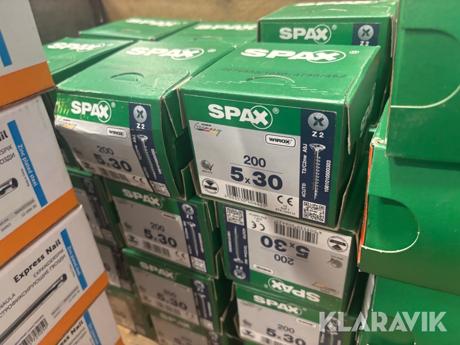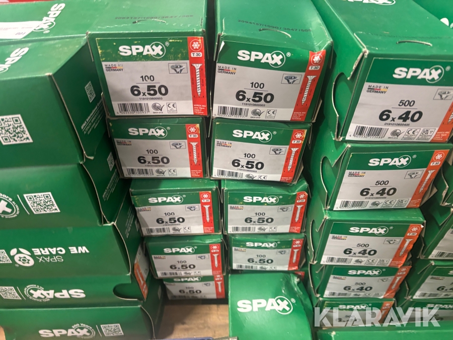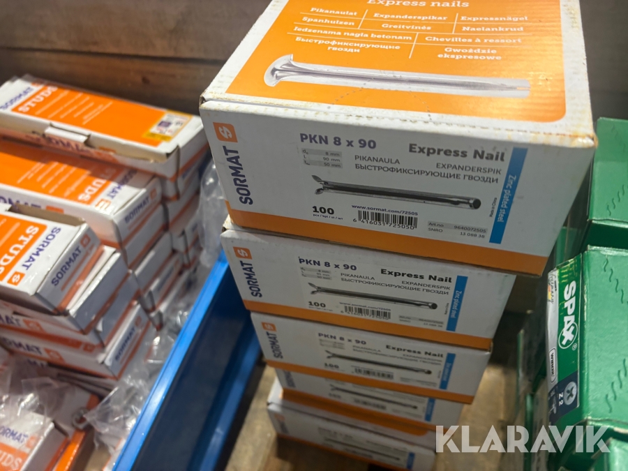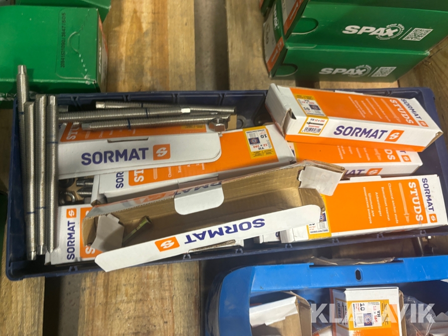 Parti skruv, ankarstänger, expanderspik Spax / Sormat