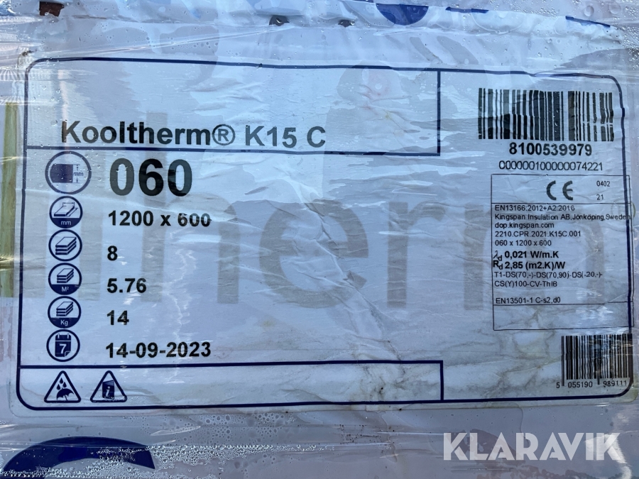 Isolering Kingspan Kooltherm K15C ca 265 m2
