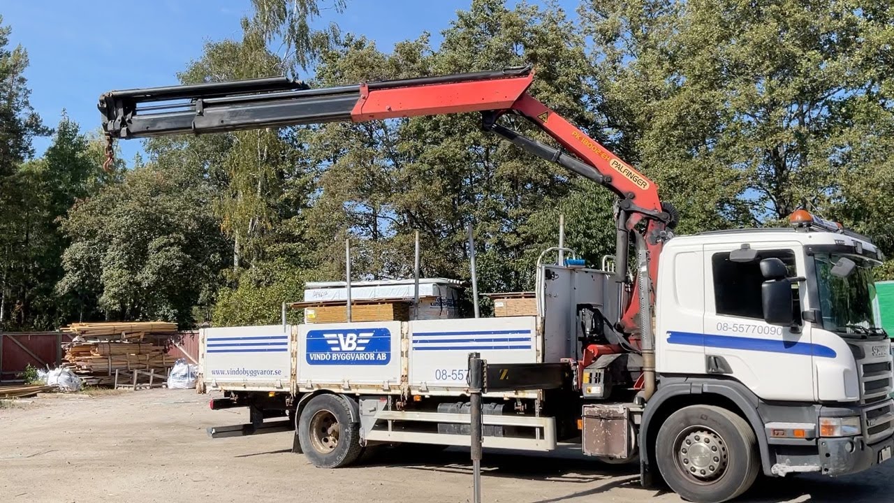 Kranbil / Brädgårdsbil Scania P280 4x2 9.3 med Palfingerkran PK18002EH