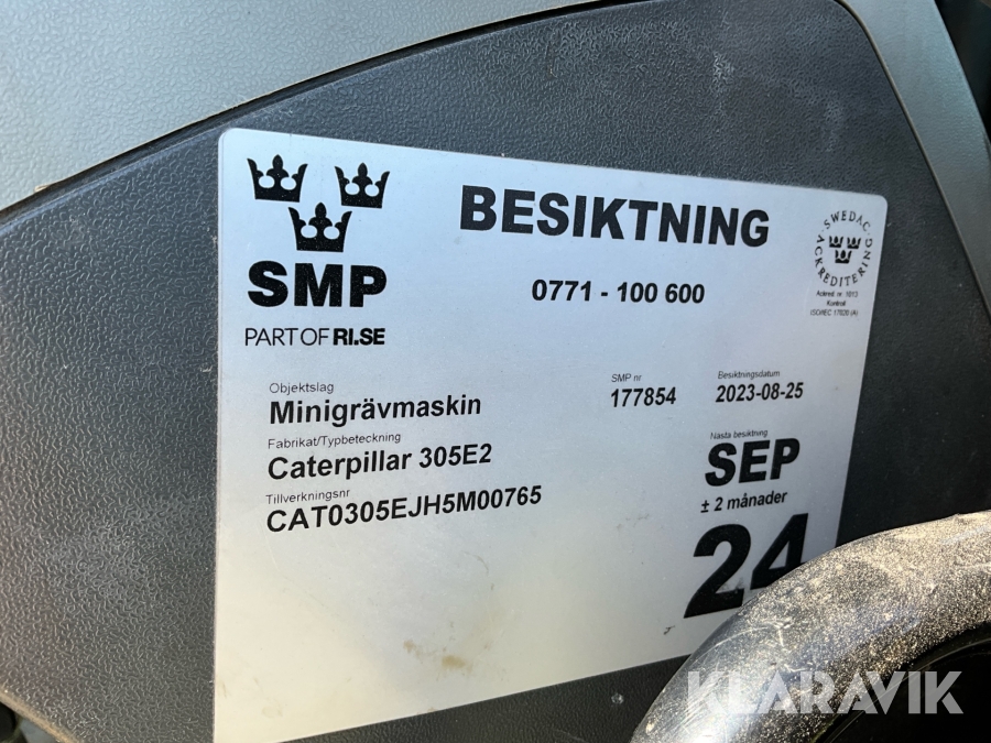 Grävmaskin CAT 305E2 CR med tiltrotator och skopor