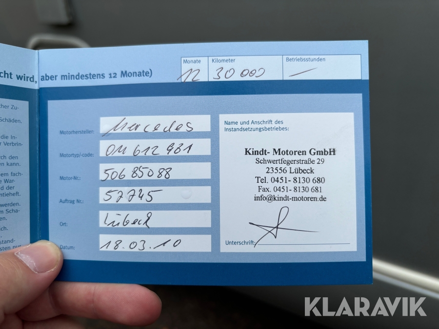 • Serie/chassinummer framgår