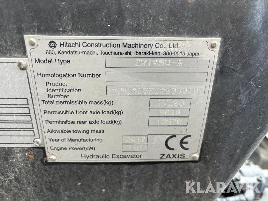 Grävmaskin Hitachi ZX145W-6