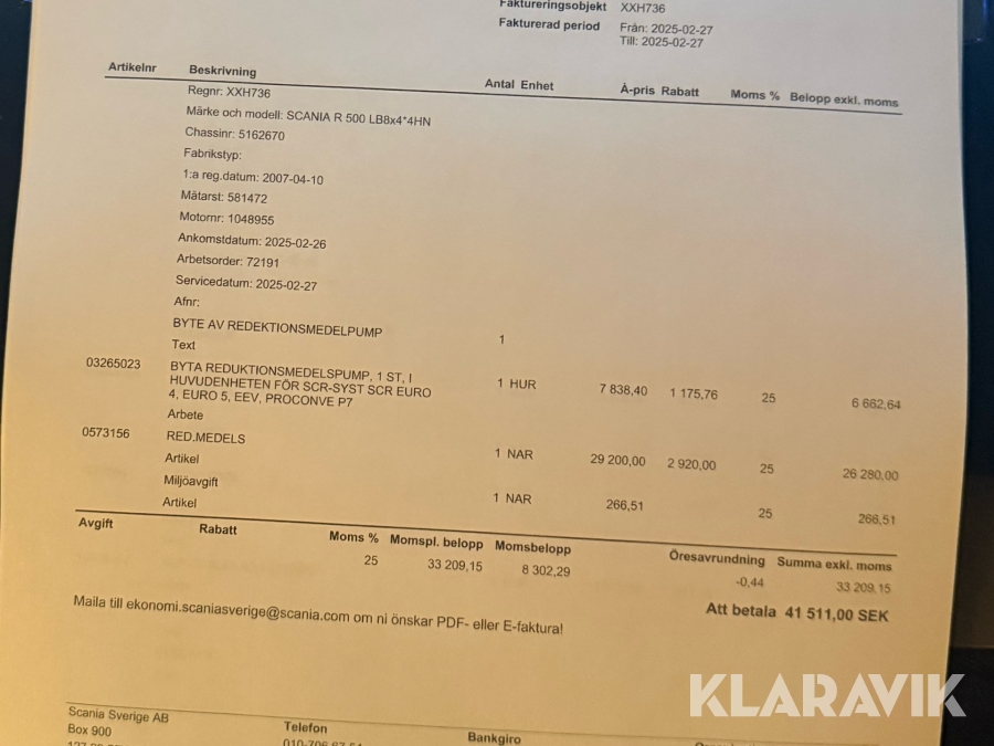 • Serie/chassinummer framgår