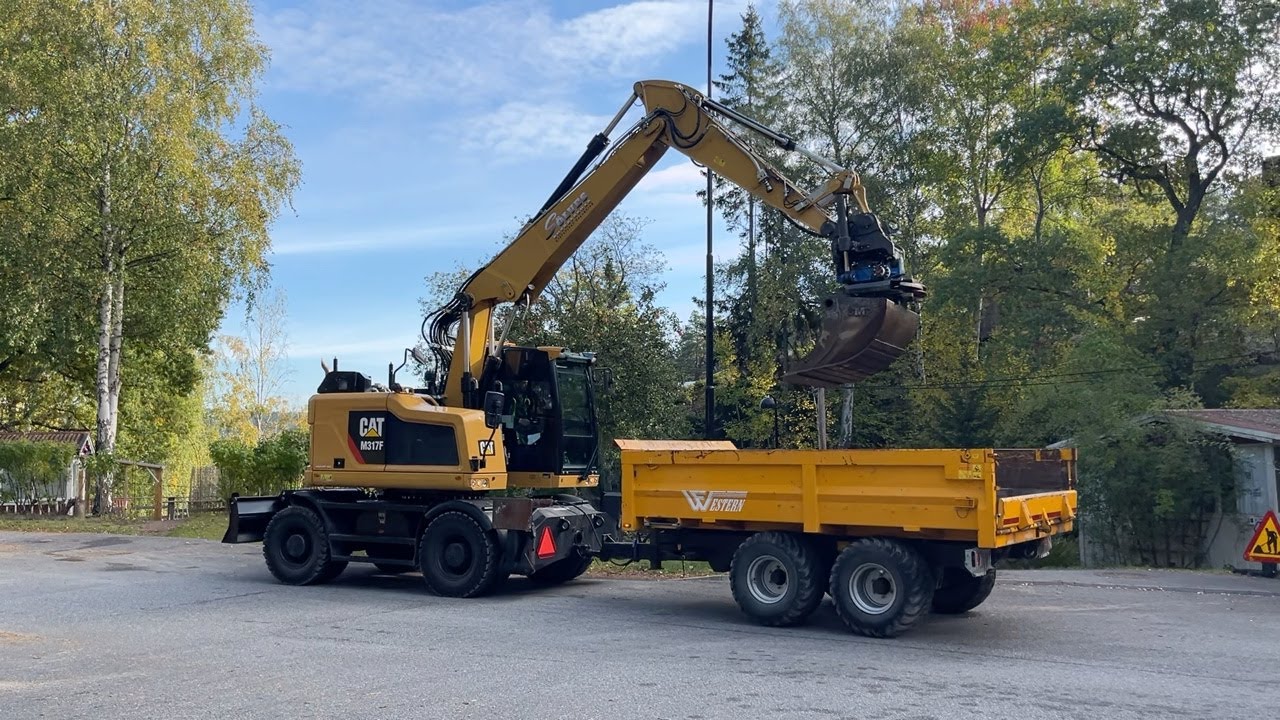 Grävmaskin CAT M317F med tippvagn och redskap