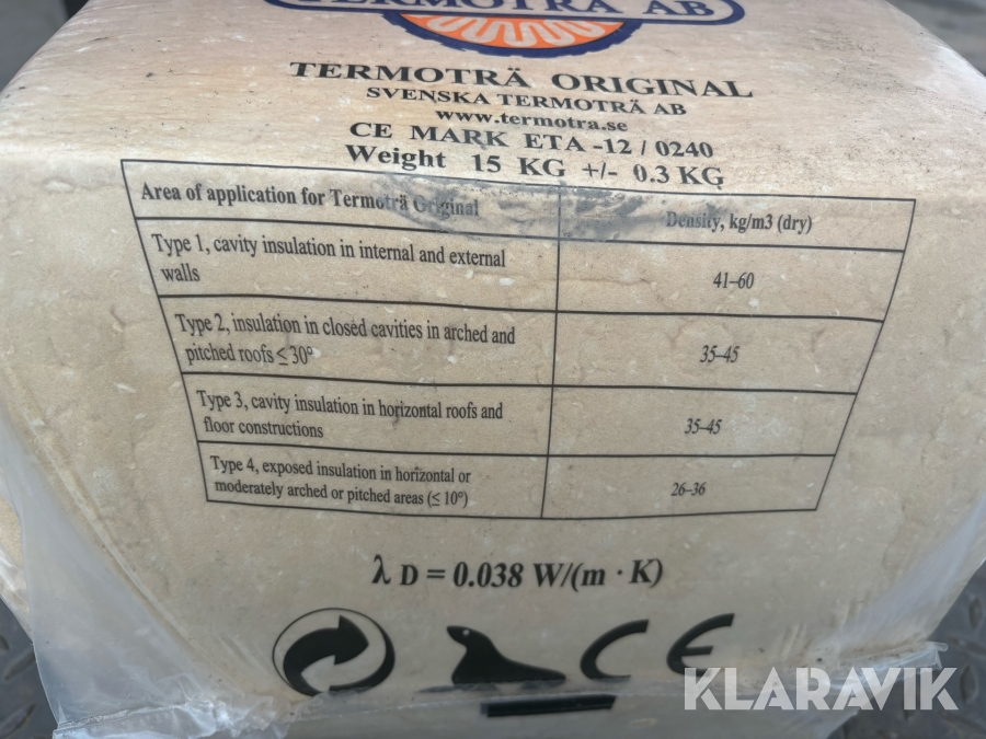 Träfiberisolering / lösull Termoträ Original 15kg 25st
