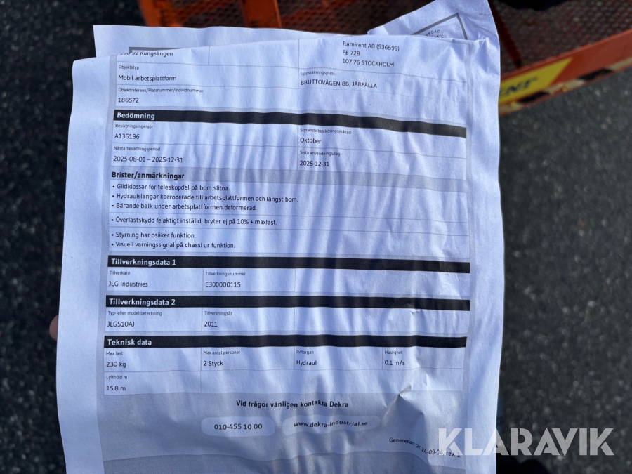 Läs om metodikenPga platsbrist är det viktigt att du som köpare hämtar inom 12 dagar från auktionsavslut. Vid frågor om frakt kontakta trade@ramirent.se.