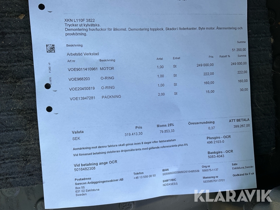 Du som köpare är skyldig att kontrollera objektet vid hämtning. Skiljer sig något avsevärt jämfört med informationen på klaravik.se? Kontakta då Klaravik innan du tar objektet från platsen. Läs fullständiga köpvillkor.