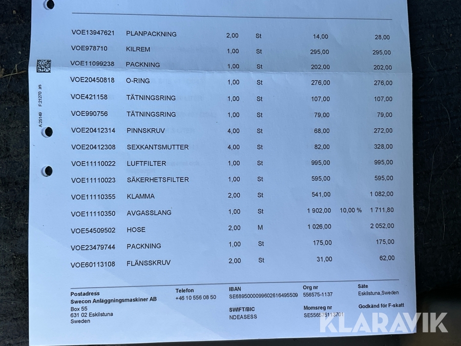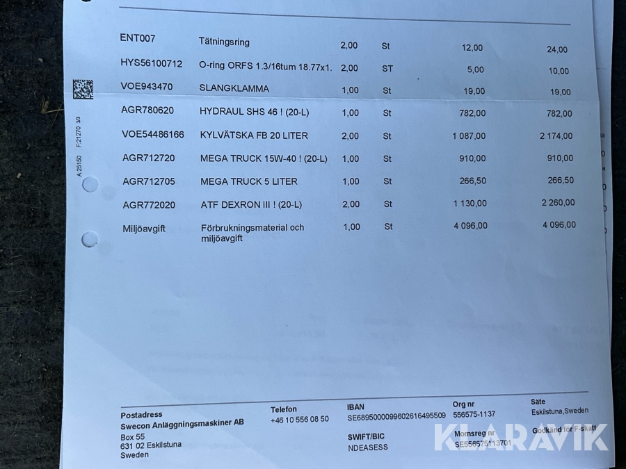 Boka frakt? Det finns ingen specifik information om frakt för just det här objektet, men om du skickar oss en förfrågan via vårt fraktformulär, så undersöker vi möjligheten. Paket, EU-pall eller större maskin? Klaravik har fraktavtal med Schenker och i de fall vi kan hjälpa till med frakt gäller det objekt som ryms i paket eller inom en EU-pall (upp till 120*80 cm och 990 kg). Det går att beställa frakt inom Sverige, dock inte till utlandet. Vid frakt på större maskiner rekommenderar vi gärna transportföretag som du kan kontakta.