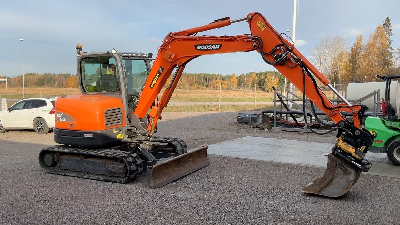 Grävmaskin Doosan DX63-3 med tiltrotator och skopor