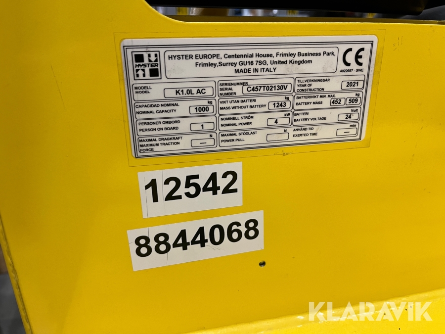 Plocktruck Hyster K1.0L AC