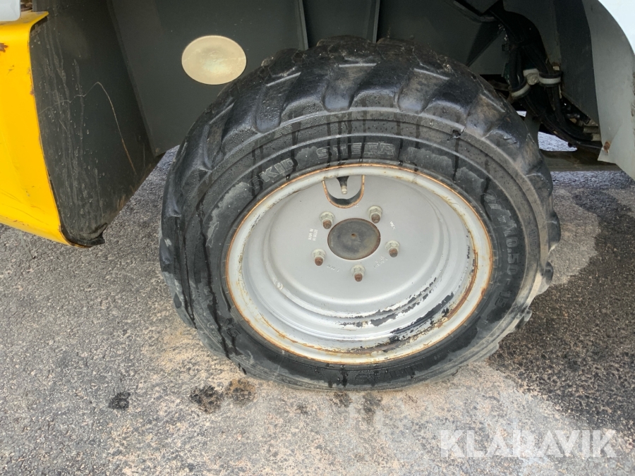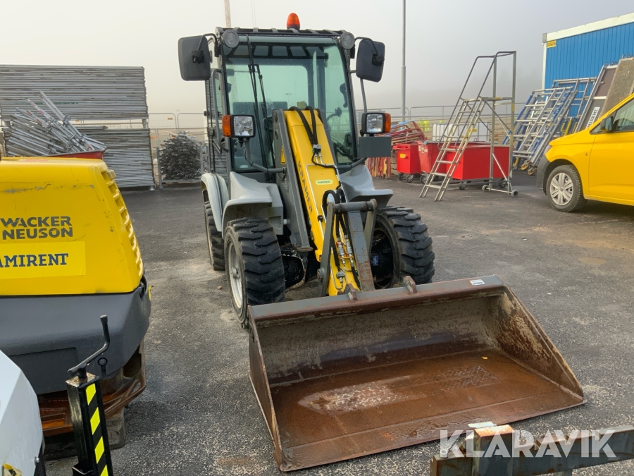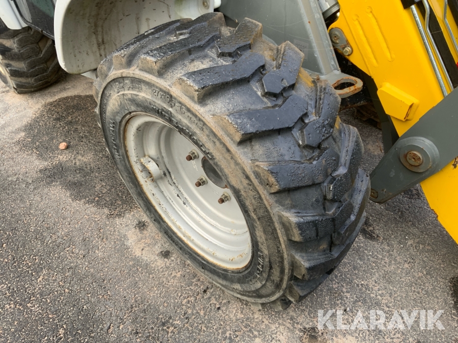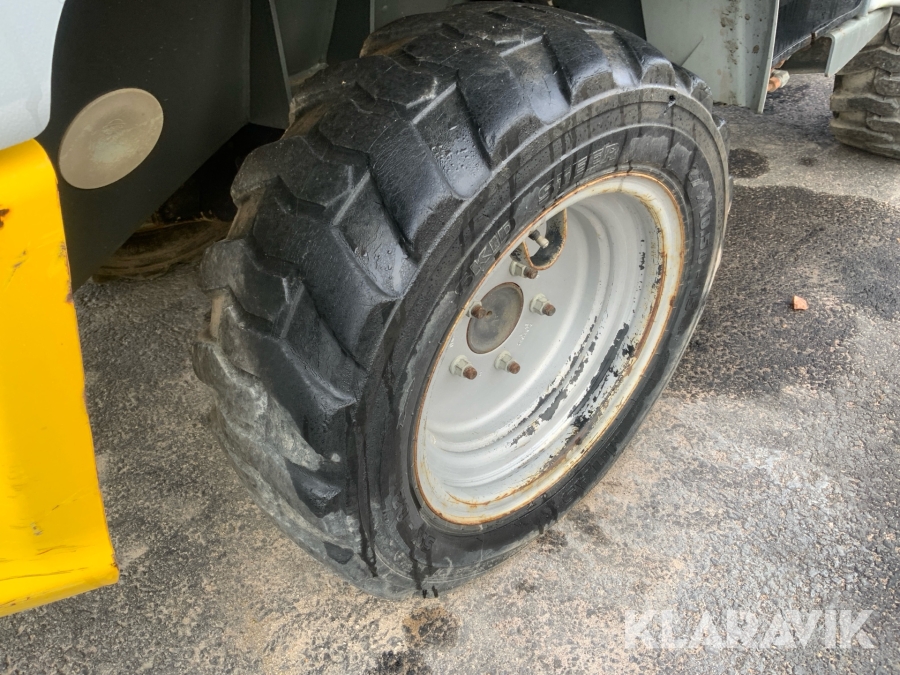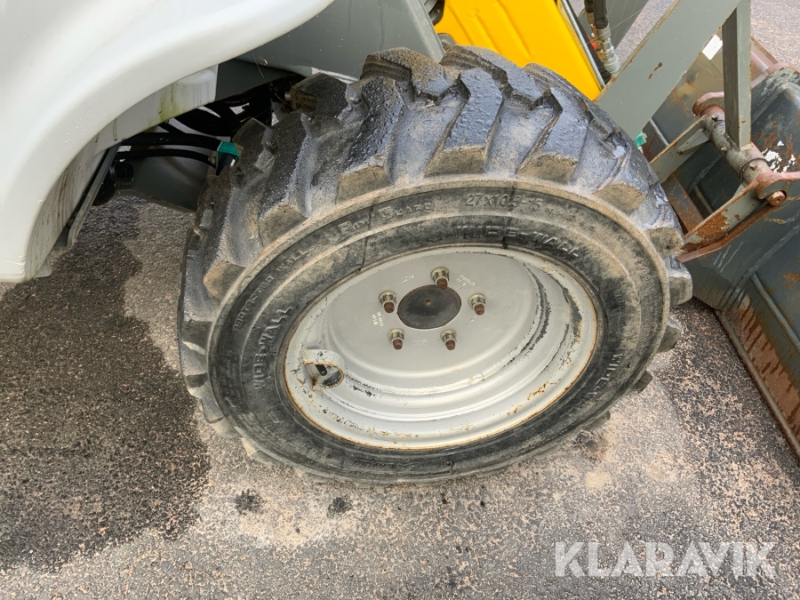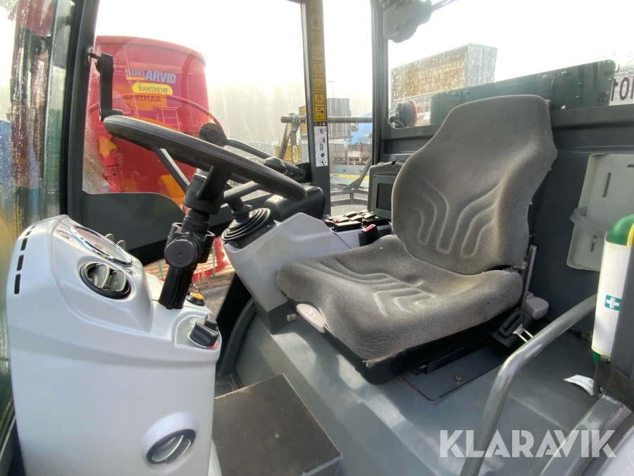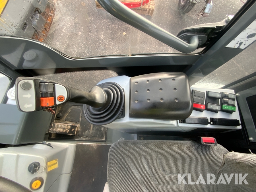 Liten kompakt hjullastare som har bra komfort och bra framkomlighet. Enkel att köra och säker då den svänger på fyra hjul istället för att att vara midjestyrd som en vanlig lastare, detta gör att tipplasten ständigt är den samma.