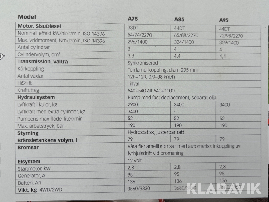 Traktor Valtra A75 med frontlastare endast 1400 timmar