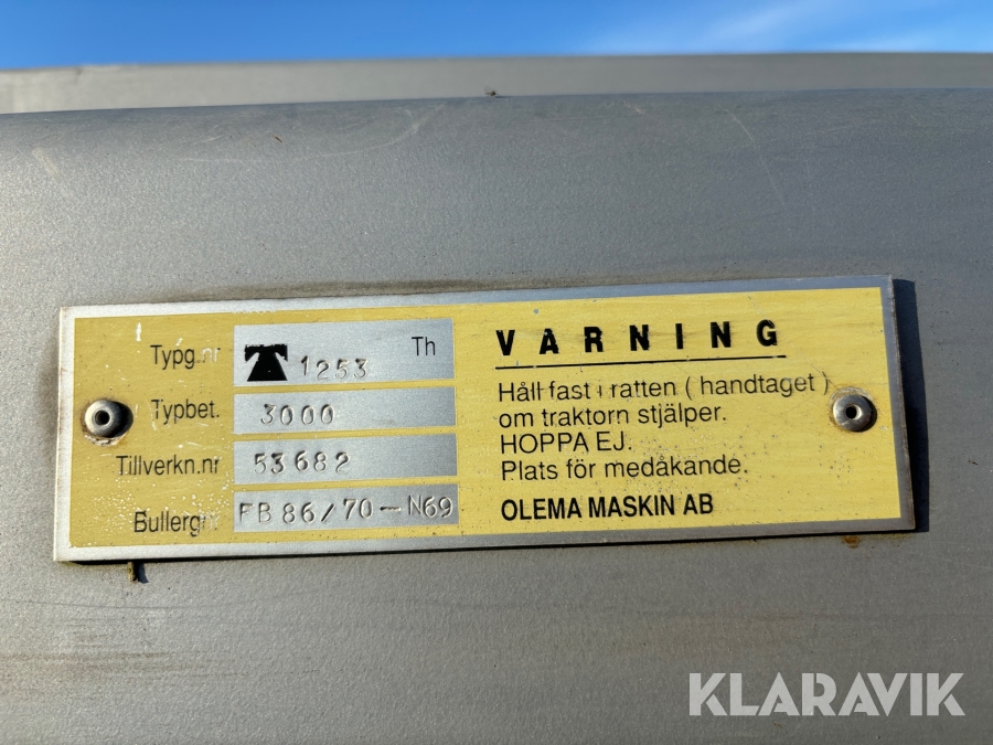 Boka frakt? Det finns ingen specifik information om frakt för just det här objektet, men om du skickar oss en förfrågan via vårt fraktformulär, så undersöker vi möjligheten. Paket, EU-pall eller större maskin? Klaravik har fraktavtal med Schenker och i de fall vi kan hjälpa till med frakt gäller det objekt som ryms i paket eller inom en EU-pall (upp till 120*80 cm och 990 kg). Det går att beställa frakt inom Sverige, dock inte till utlandet. Vid frakt på större maskiner rekommenderar vi gärna transportföretag som du kan kontakta.