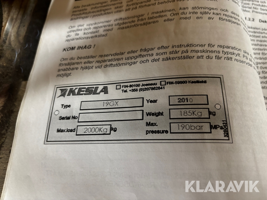 Boka frakt? Det finns ingen specifik information om frakt för just det här objektet, men om du skickar oss en förfrågan via vårt fraktformulär, så undersöker vi möjligheten. Paket, EU-pall eller större maskin? Klaravik har fraktavtal med Schenker och i de fall vi kan hjälpa till med frakt gäller det objekt som ryms i paket eller inom en EU-pall (upp till 120*80 cm och 990 kg). Det går att beställa frakt inom Sverige, dock inte till utlandet. Vid frakt på större maskiner rekommenderar vi gärna transportföretag som du kan kontakta.