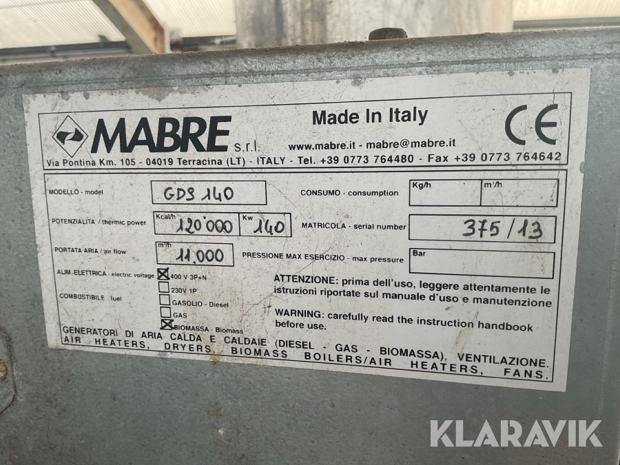 Varmluftspanna pellets Mabre GDS 140