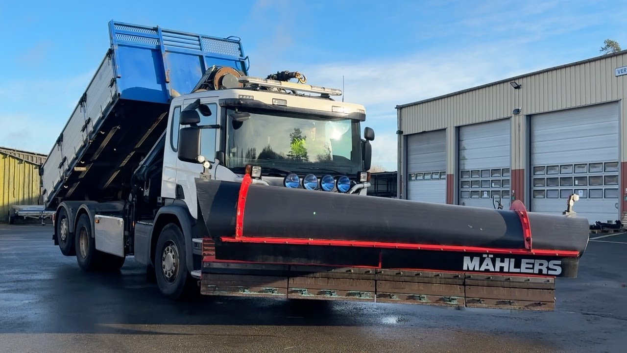 Lastbil Scania P370LB6X2*4HNB med kran och plogblad