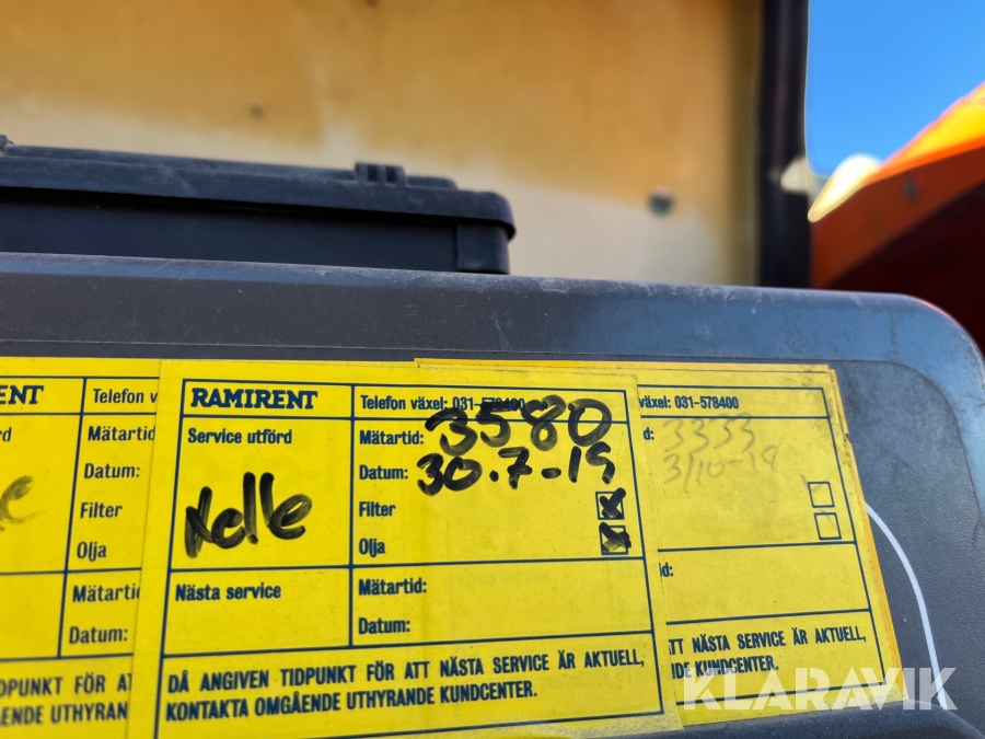 Läs om metodikenPga platsbrist är det viktigt att du som köpare hämtar inom 12 dagar från auktionsavslut. Vid frågor om frakt kontakta trade@ramirent.se.